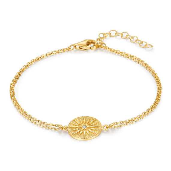 - Product: 18ct gold plated silver bracelet, round, sun, zirconia