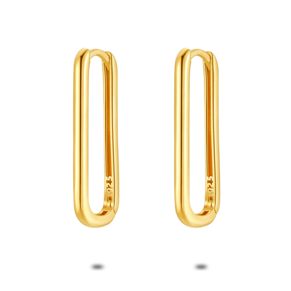 18ct gold plated silver oval-shaped hoop earrings, gold-coloured, 25 mm.