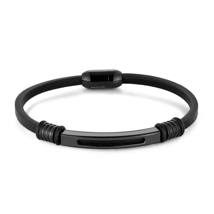 - Product: Bracelet in stainless steel, black leather