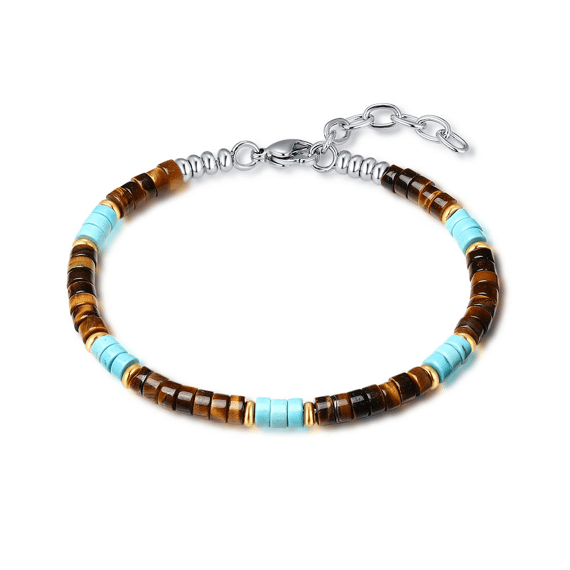 Stainless steel bracelet, with colored stones in blue and brown.