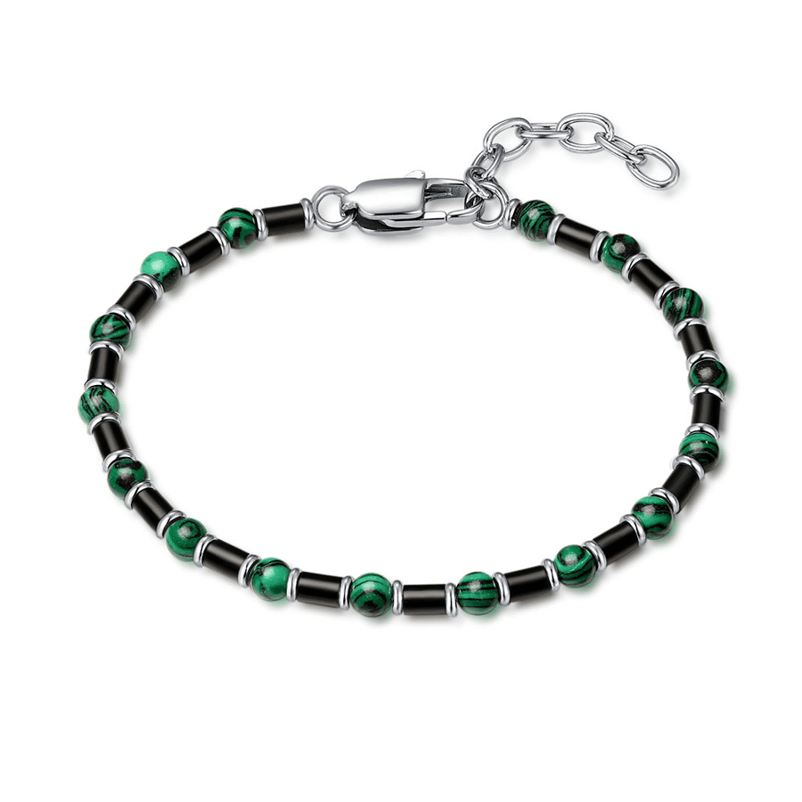 - Product: Bracelet in stainless steel, green and black stones