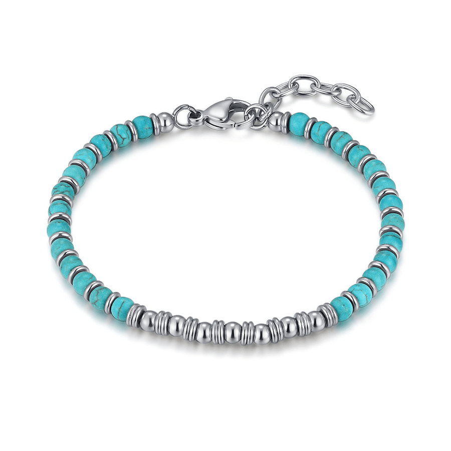 - Product: Bracelet in stainless steel, turquoise and round disks