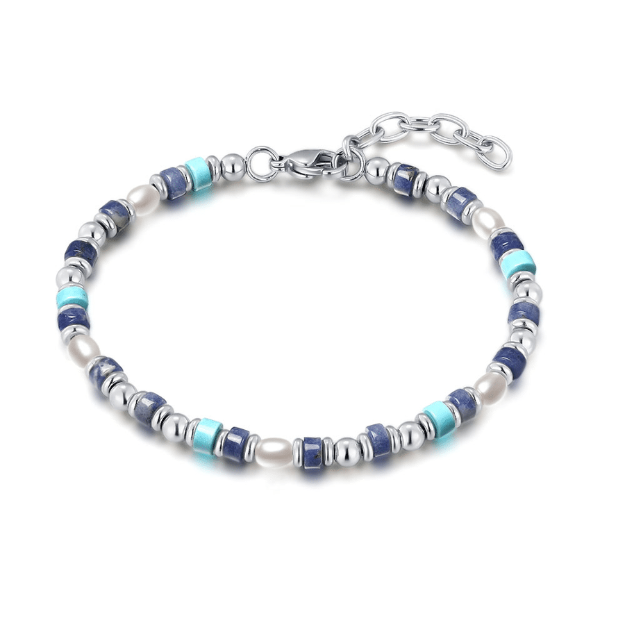 - Product: Bracelet in stainless steel, fresh water pearls and colored stones