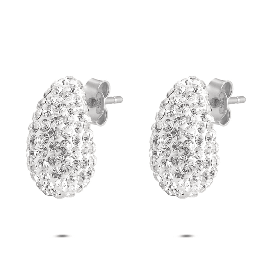 Earring per piece in silver coloured silver, drop-shaped with zirconia.