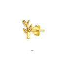 Earring in 18ct gold-plated silver, shaped as a branch with leaves, decorated with small transparent zirconia stones.