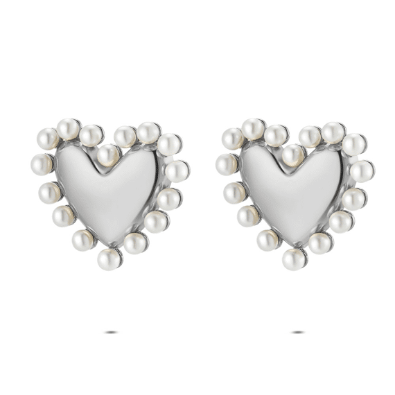 Earrings in stainless steel, heart shape with pearls
