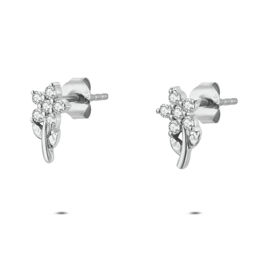 Silver earrings, flower shape with multiple zirconia. Perfect for any occasion.