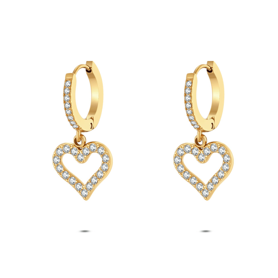 Earrings in stainless steel, with hearts and zirconia.