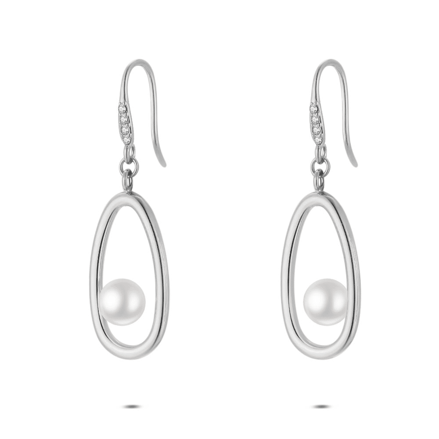 Earrings in stainless steel, oval with pearl
