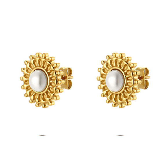 - Product: Earrings in stainless steel, sun shape with pearl