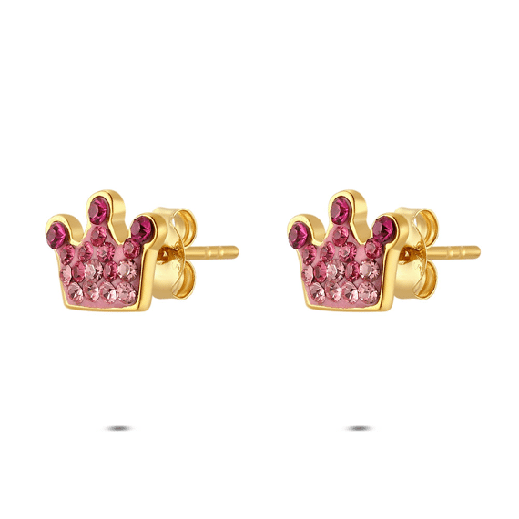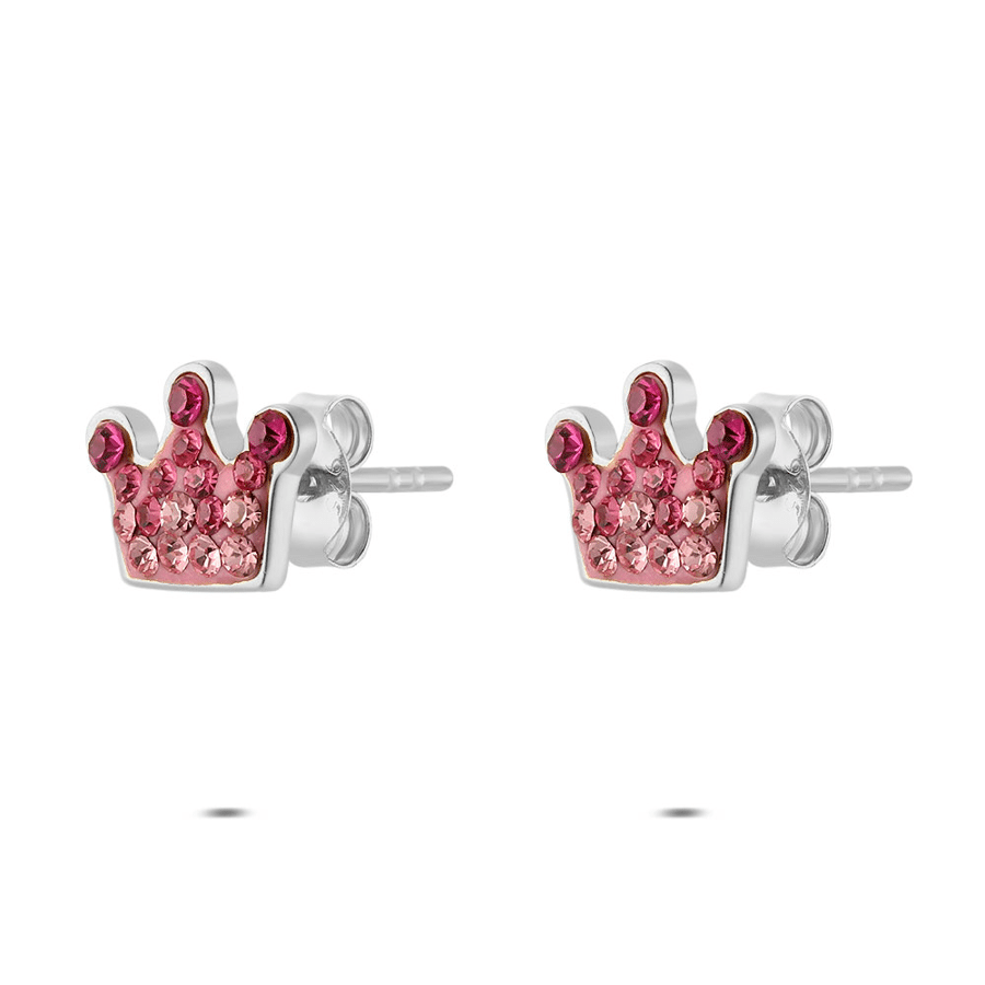 - Product: Earrings in silver, crown with pink zirconia