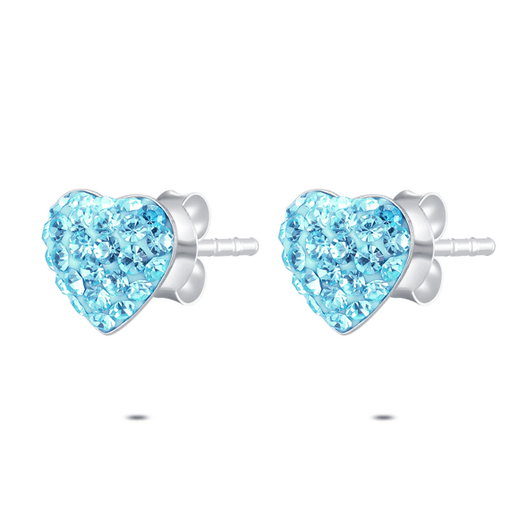 Earrings per piece in silver-coloured silver, hearts with blue zirconia.