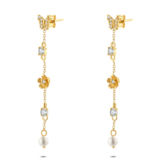Silver earrings, featuring a pearl and zirconia elements.