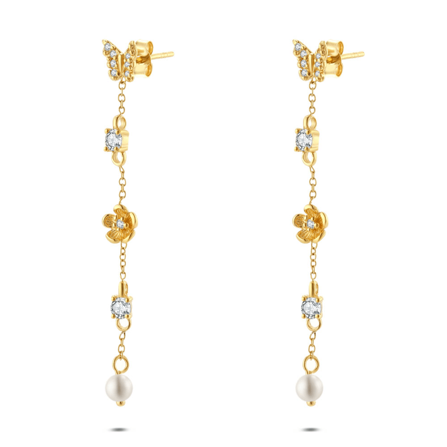 - Product: Earrings in silver, with pearl and zirconia