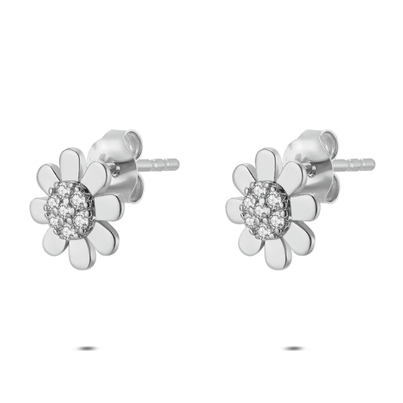- Product: Earrings in silver, flower shape with zirconia