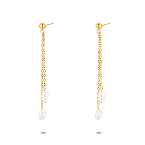 - Product: Gold coloured stainless steel earrings, double chain, pearls