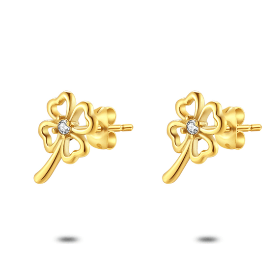 - Product: Gold coloured stainless steel earrings, open clover, 1 crystal