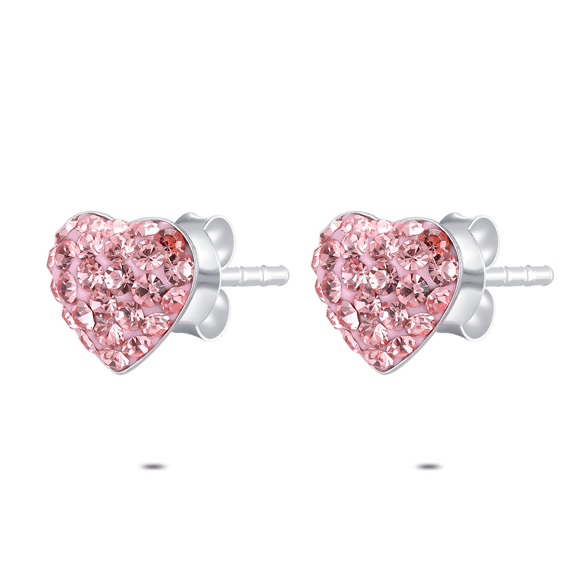 Earring per piece, heart-shaped with pink zirconia in silver-coloured silver.