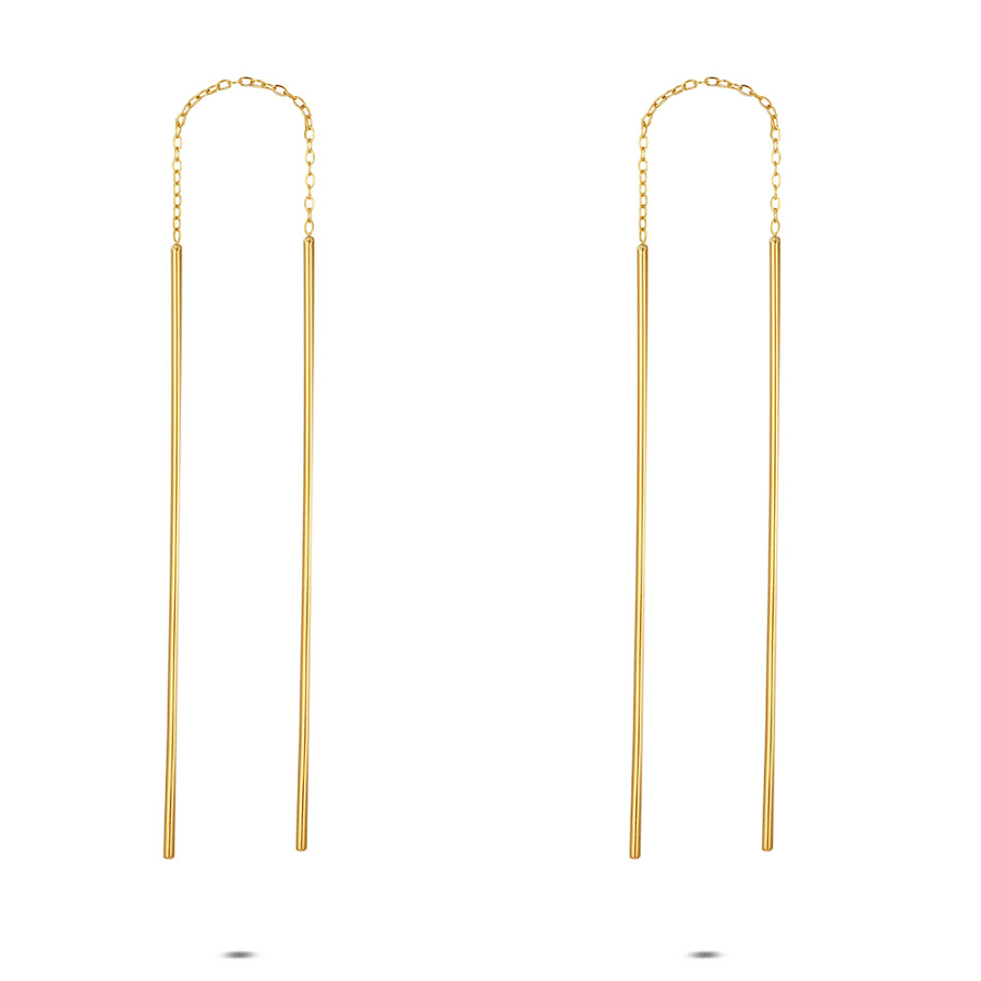 Stainless steel earrings with long sticks on a chain.