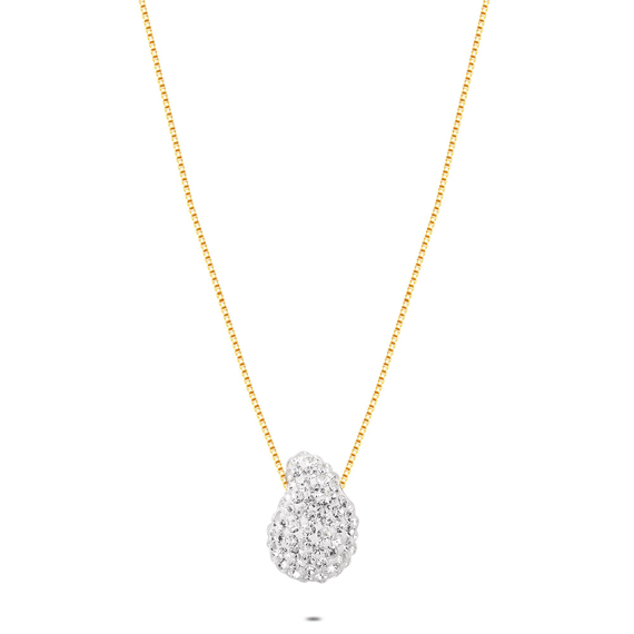 Necklace in gold-coloured silver with a drop-shaped pendant and zirconia. Ideal for any occasion.