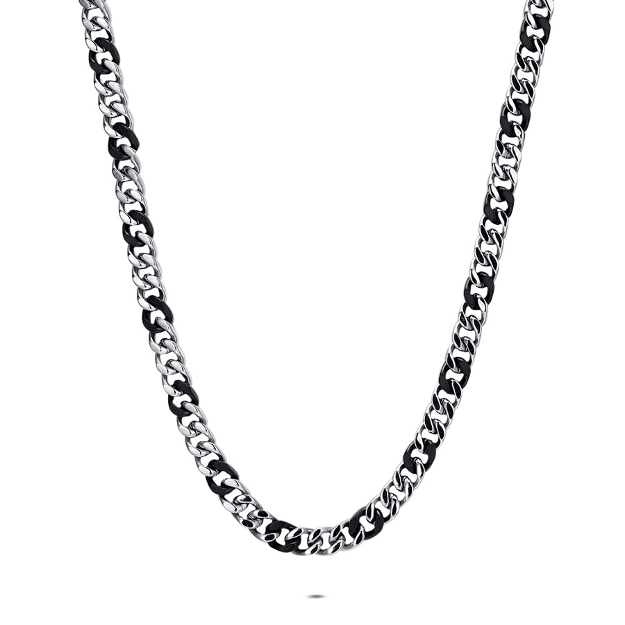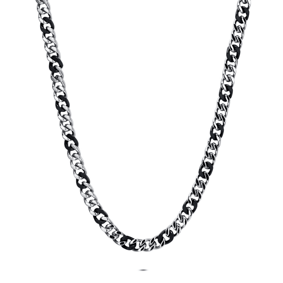 Necklace in stainless steel, links in black and steel.
