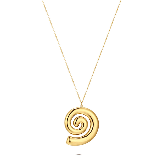 Stainless steel necklace with spiral-shaped pendant.