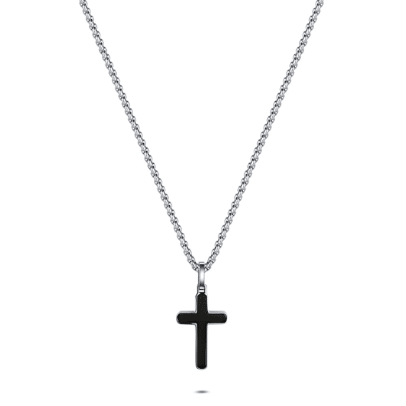 - Product: Necklace in stainless steel, black cross