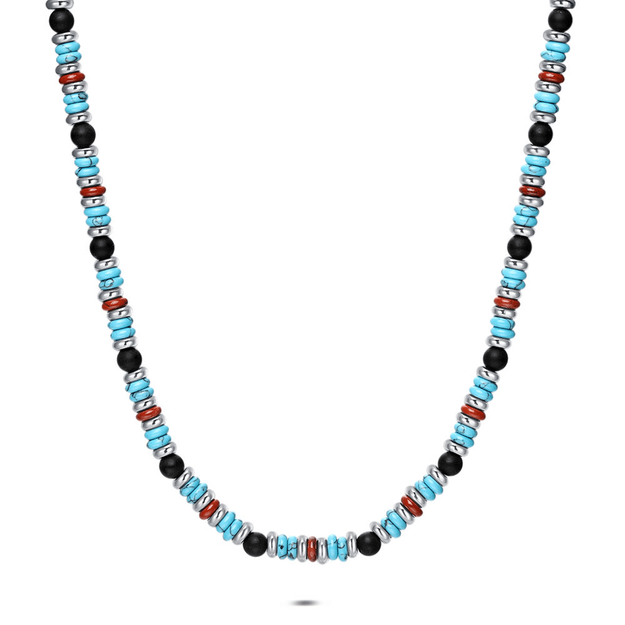 - Product: Necklace in stainless steel, colored beads