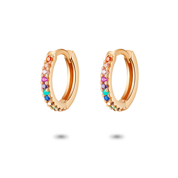 Rosé silver earrings, hoop earrings, multi-coloured stones, zirconia.