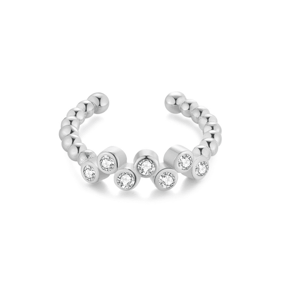 Silver earring per piece, earcuff, little dots with 7 two mm zirconia in zigzag.