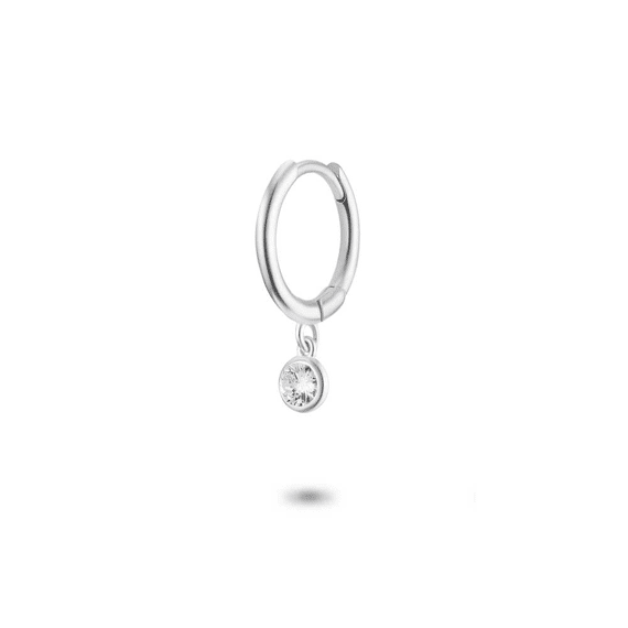 Silver earring per piece, hanging white zirconia, round, 4 mm.