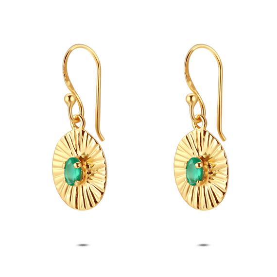 Earrings in silver, ovals with green stone