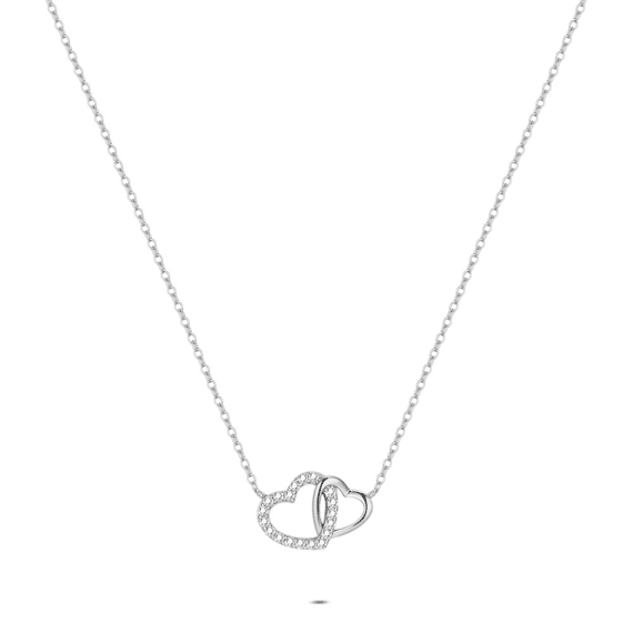 Silver necklace, two hearts with zirconia.