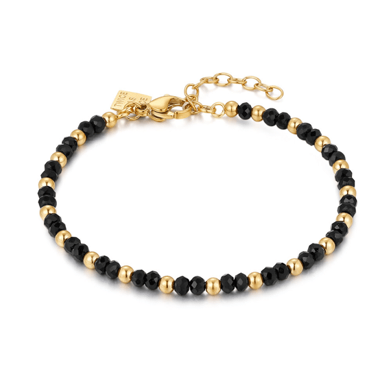 Stainless steel bracelet, black and gold balls, size is adjustable.