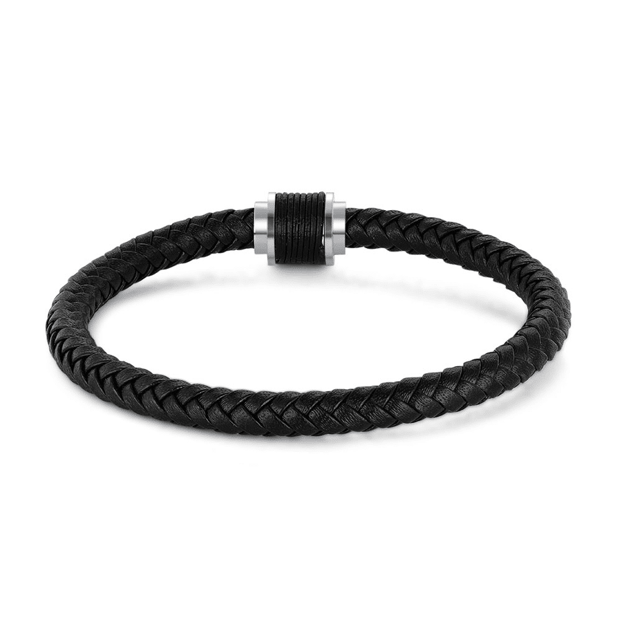 Stainless steel bracelet with a braided design and a sturdy clasp.