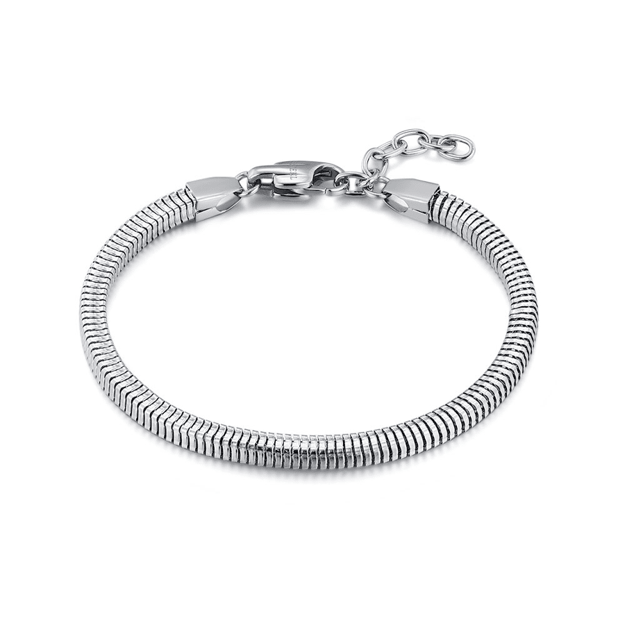 Stainless steel bracelet, featuring a link pattern and a clasp.