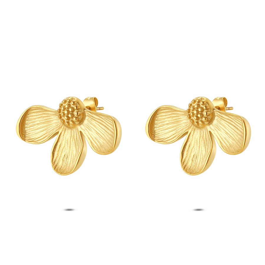 Stainless steel earrings, flower shape with details.