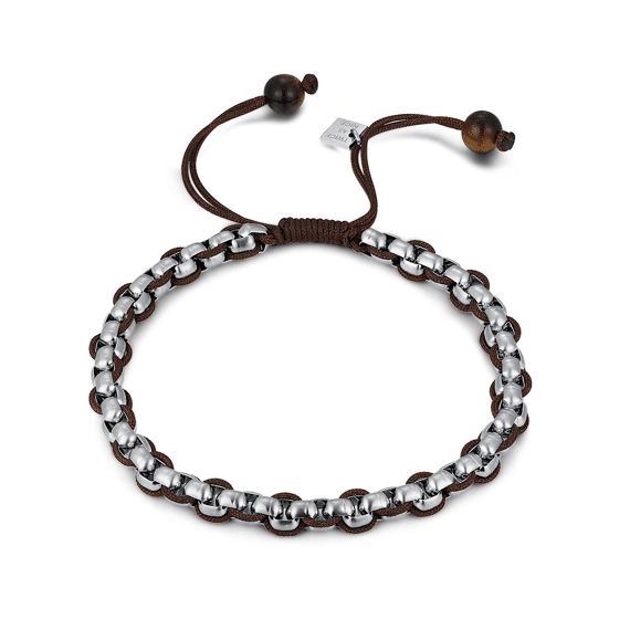 Stainless steel bracelet with a woven design and adjustable closure.