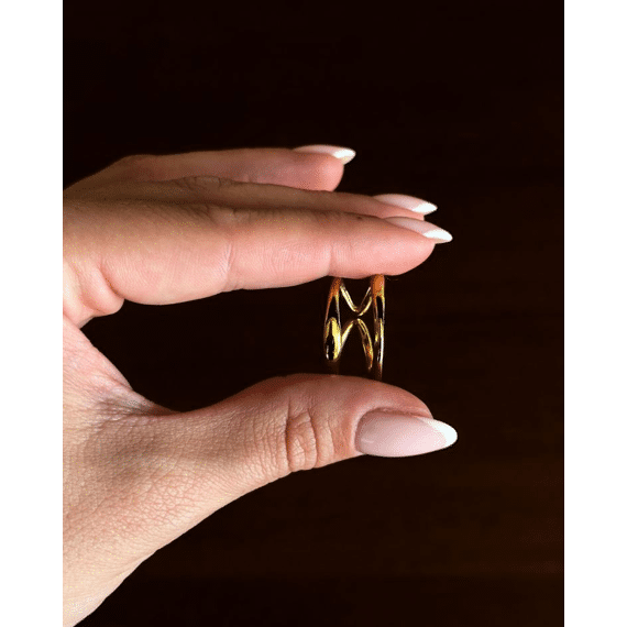 Bague en acier inoxydable doré avec un design ondulé abstrait.