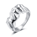 Bague en acier poli avec un motif organique distinctif et des textures alternant mates et brillantes.