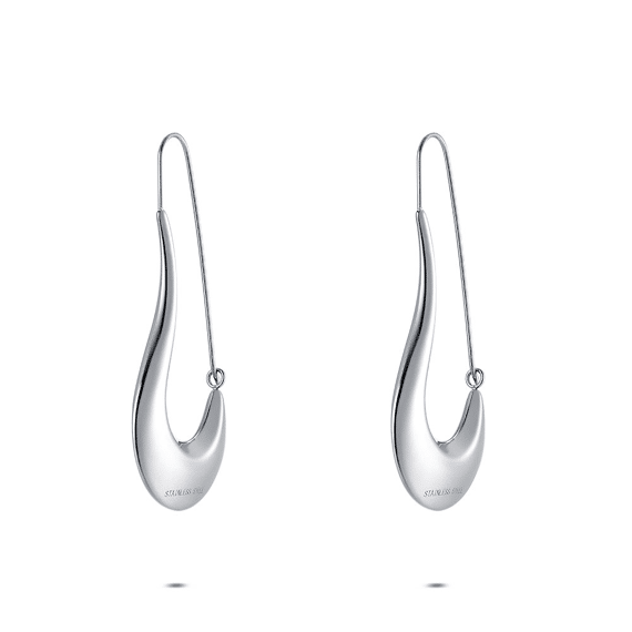 Boucles d’oreilles en acier poli avec un design ondulé. Élégant et moderne.