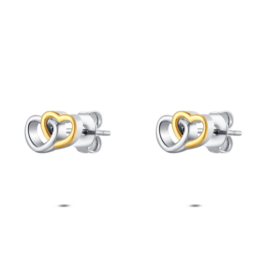 Boucles d’oreilles en acier poli, forme de cœur avec un accent doré.