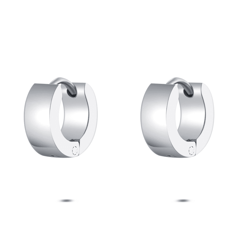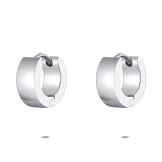 Boucles d’oreilles en acier poli, forme ronde avec finition lisse.