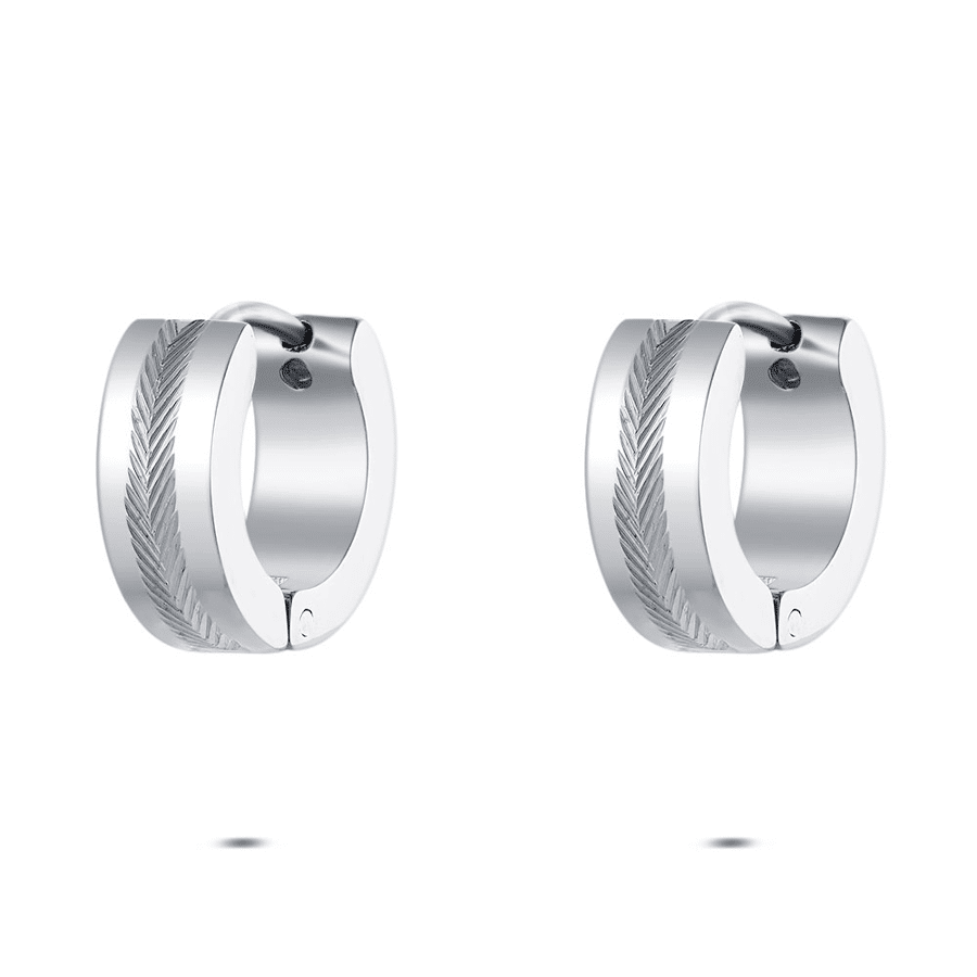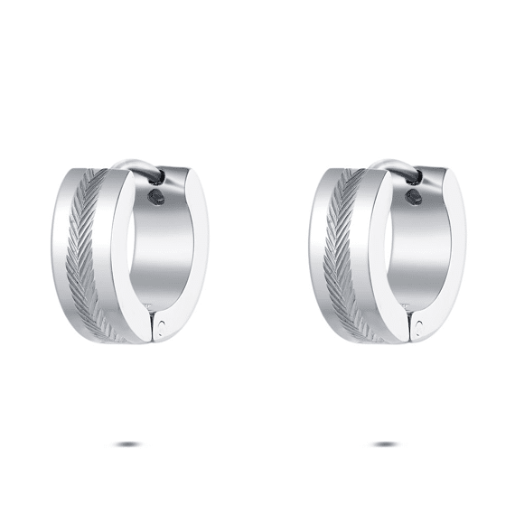 Boucles d’oreilles en acier poli avec un motif gravé.