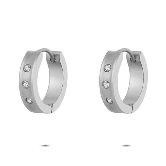 Boucles d’oreilles en acier poli, avec zircone sur le côté.