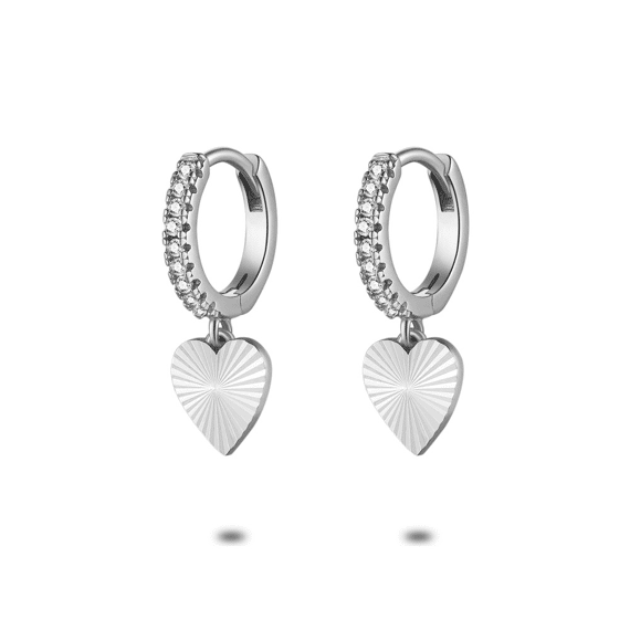 Boucles d’oreilles en argent, anneaux avec zircons, coeur