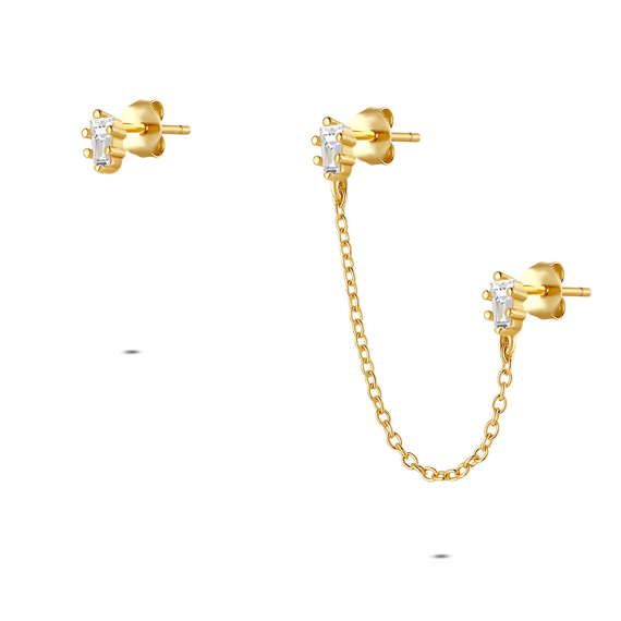 Boucles d’oreilles en argent, avec chaîne et zircone