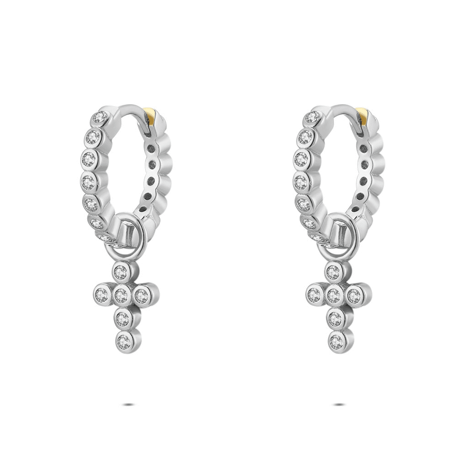 Boucles d’oreilles en argent, avec une croix suspendue et zircone.