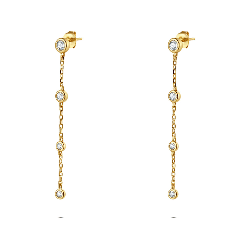 Boucles d’oreilles en argent, design pendantes avec zircone sur chaîne.
