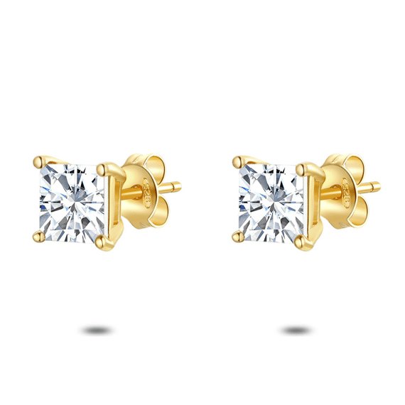 Boucles d’oreilles en argent plaqué or 18ct, zircon carré de 6 mm.